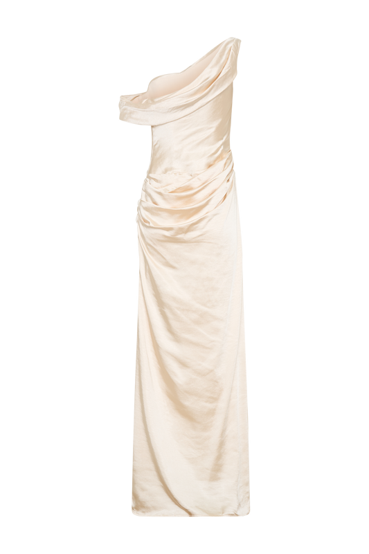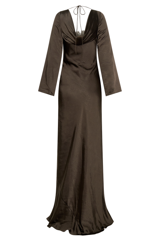 Lyla Asymmetrical Satin Maxi Dress - Bronze Taupe