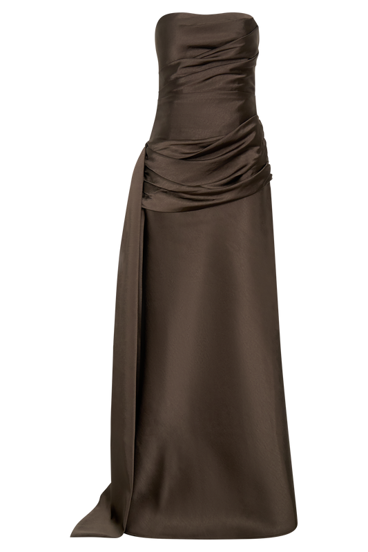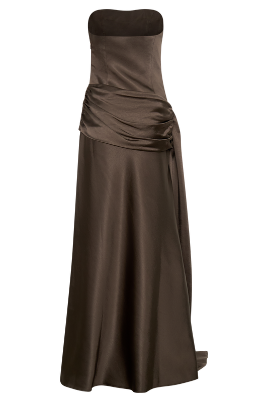 Madison Strapless Slinky Maxi Dress - Chocolate