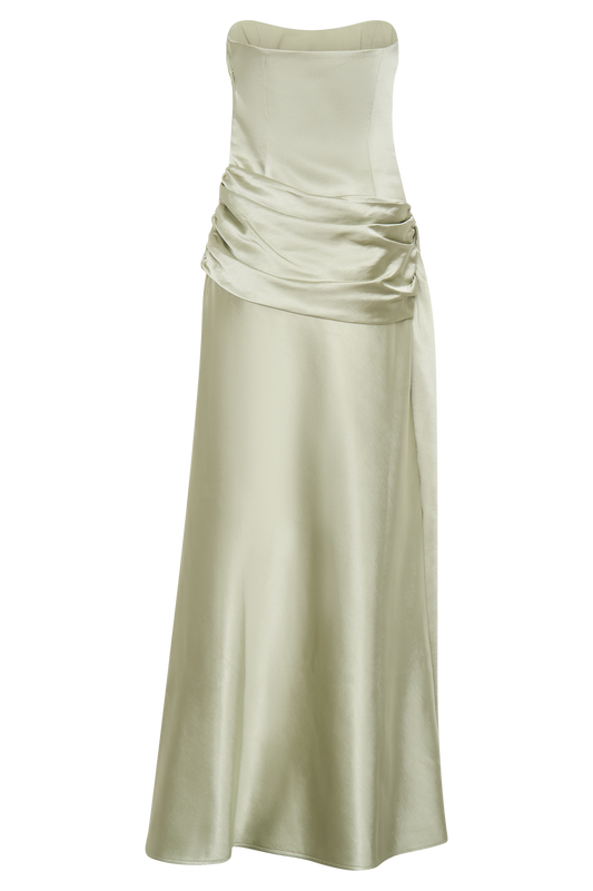 Sarah Strapless Maxi Dress With Waist Tie - Sage