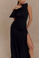 One Shoulder Crepe Maxi Dress - Black