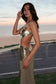 The ADORIA is a sleeveless maxi dress with a square neckline and strategic cutouts. Its fairly wide shoulder straps blend into a classic bra-type closure at the upper back. Its fully-lined fabric offers a comfortable bodycon fit, closing with an invisible zipper at the centre back for a smooth, seamless silhouette. Its side cutouts accentuate an alluring hourglass silhouette with an eye catching back cutout.