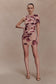 One Shoulder Mesh Mini Dress - Nude Blurred Floral Print