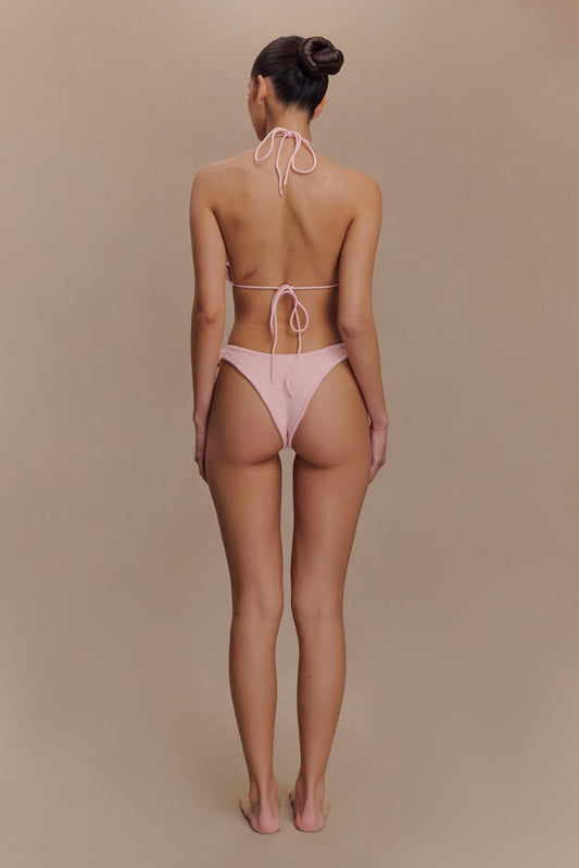 The AESHA Floral Crochet Bikini Bottoms are the perfect blend of playful style and beach-ready comfort. Made from intricate crochet fabrication, these bottoms feature delicate floral details on the hips, adding a feminine touch to your swimwear collection. Fully swim-lined for added comfort and support, the cheeky cut offers a flattering silhouette with just the right amount of coverage. Whether you're lounging poolside or enjoying a day at the beach, these bikini bottoms are a must-have for your summer wardrobe. Pair them with the Aesha Floral Crochet Bikini Top for a complete, coordinated look.