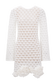 The AILEEN Ruffle Crochet Mini Dress captures coastal sophistication with a touch of playful romance. Crafted from a delicate crochet knit and lined with soft mesh for comfort, this mini dress features long sleeves and a striking deep V back neckline for sun-kissed drama. The flirty ruffle hemline adds a feminine finish, while the fitted silhouette is perfect for everything from lazy lunches to twilight dinners by the sea.