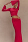 Step into sophistication with the AINSLEY Asymmetrical Long Sleeve Top, where modern design meets refined detail. This stunning piece features a chic asymmetrical neckline that beautifully frames the face, complemented by long sleeves that offer both coverage and style. The lined bodice ensures a smooth, flattering fit, while the open shoulder design adds a touch of daring allure. Accentuated with exquisite floral hardware, this top transforms a classic silhouette into a statement piece. Perfect for pairing with the Ainsley Asymmetrical Maxi Skirt with Floral Hardware, for an effortlessly elevated ensemble.