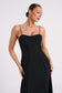 ALAINA is a non-stretchy dress, made from rayon and viscose. This combination creates a sophisticated A-line silhouette, fully lined with polyester for an extra layer of comfort. It features a non-constricting relaxed fit, a square neckline with a slight dip, and thin spaghetti straps with adjusters. It is secured with a side zipper for ease of wear and is supported with back buttons, allowing for more ventilation and freedom of movement. With a classic midi length it pairs perfectly with strappy heels for an ensemble you’ll wear on repeat.