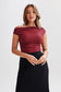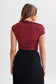 ALAYNA is an asymmetrical top with a straight-cut neckline and strategic ruching. Sewn from a custom blend of elastane and recycled nylon, its stretchy fabrication offers a fairly bodycon fit that highlights your curves. The ruching around the waist and arms further shapes and elongates the body, creating a universally flattering silhouette. Fresh and unique, this seasonal must-have can be worn as a solo feature or layered with a textured blazer. Complete the contemporary vibes with a bottom like Jemima Straight Leg Pants.