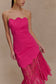 The ALEENA Satin And Lace Maxi Dress is an elegant expression of modern femininity. Featuring a strapless silhouette with internal boning for structured support, this maxi dress flatters with a satin bodice that softly hugs the figure. The invisible side zip ensures a seamless finish, while the unlined lace skirt flows effortlessly to the floor, complete with godet inserts that add volume and graceful movement. A harmonious blend of sleek satin and delicate lace, this dress is designed to captivate at every occasion.