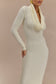 Introducing the ALESSANDRA Reversible Knit Maxi Dress, a stunning, multi-wear piece designed for the modern woman. This long sleeve dress features a striking deep plunge neckline that can be reversed for a low scoop back, offering two distinct looks in one. The cowl-shaped neckline adds a soft, draped elegance, while the bodycon fit hugs your figure in all the right places. Crafted with a ribbed overlay panel detail, it enhances the silhouette, flowing into a straight skirt shape for a sleek, elongated look. The unlined knit fabric ensures comfort and ease of movement, making this maxi dress both chic and effortless for day-to-night wear.