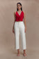 The ALESSANDRA Slinky Ruffle Top blends soft romance with modern allure. Designed with a plunging V neckline and racer-back silhouette, it frames the body with confident elegance. A gathered bodice enhances the fitted bodycon shape, while ruffle detailing through the front adds movement and feminine texture. Fully lined for a smooth, supportive finish, this top delivers elevated impact — perfect for pairing with tailored separates or statement skirts for after-dark styling.