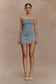 The ALESSIA Embroidered Denim Corset blends classic structure with a playful summer twist. This strapless design features a fitted bodice, longline silhouette, and a rounded front hem for a flattering shape. A back zip closure keeps the fit sleek and secure, while a delicate sun embroidery detail adds a touch of resort-ready charm. Style it with linen trousers or a flowy skirt for an effortless mix of polish and ease—perfect for long lunches, golden hour moments, or coastal city strolls.