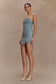 The ALESSIA Embroidered Denim Mini Skirt is a playful essential with a tailored twist. Featuring a mid-rise waistline, side zip closure, and classic belt loops, this mini silhouette is finished with rounded leg cut-out detailing for a soft sculpted look. A delicate sun embroidery adds a touch of vacation charm, making it the perfect piece for sunny getaways and warm-weather styling.
