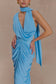 The ALEX Chiffon Maxi Dress is a modern take on timeless elegance. Designed with an asymmetric neckline and a versatile under-bust panel that wraps around the neck as a soft scarf, this dress delivers subtle drama and sophistication. Gathered and draped seams through the centre front and back add texture and movement, while the full-length silhouette creates effortless flow. Finished with a discreet invisible zip and full lining for comfort, this dress is your go-to for occasions that call for understated impact.