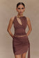 The ALICENT Slinky Beaded Top brings refined drama to elevated styling. Featuring a high neckline adorned with delicate beading, this sleeveless silhouette is balanced by a bold front cutout that frames the décolletage. The bodice is softly gathered to flatter the figure, creating a sleek, sculpted finish. Perfect for pairing with tailored trousers or a flowing skirt, this top adds shine and sophistication to any occasion—from sunset dinners to after-dark events.