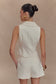 Redefine sophistication with the ALIX Mixed Button Vest, a modern essential for your wardrobe. Designed with a sleek V front and a button-up closure, this sleeveless vest is elevated by an oversized collar for a bold yet refined look. Custom decorative buttons add a unique touch, making it a standout piece. Pair effortlessly with the Alix Suiting Mini Skort for a coordinated ensemble that blends elegance and versatility, perfect for any occasion.