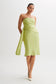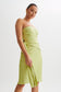 The ALLEGRA Satin Ruched Strapless Top is a vision of modern elegance and sophistication. Its strapless design exudes timeless allure, allowing you to showcase your shoulders with confidence. With an asymmetrical hem, this top offers a contemporary twist on classic style. The ruching at the waist creates a flattering silhouette, accentuating your curves with grace. Complete with a hip sash for added flair, it adds a touch of charm to your ensemble. Lined for comfort and quality, and featuring a side zipper for easy wear, the Allegra Top is a versatile piece that effortlessly transitions from day to night with refined charm. Pair with the Allegra Satin Knee Length Skirt for a complete top.
