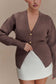 The AMANDA Statement Button Knit Cardigan is a versatile layering piece designed with subtle sophistication. Featuring a V neckline, button-front closure, and a relaxed fit, it’s framed by long sleeves and a ribbed hem for a refined finish. Gold buttons elevate the look, adding a hint of shine to its classic knit design. Perfect for styling closed or open, this cardigan brings effortless polish to any wardrobe rotation.