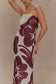 Strapless Chiffon Maxi Dress - Brown Deco Fleur Print