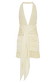 The AMBROSI Satin Chiffon Mini Dress is a stunning and sophisticated choice for any special occasion. This dress features a plunging deep V neckline and a chic halter style, creating a glamorous and elegant look. The ruched hip panel enhances the dress's flattering fit, while the delicate hem frill and tie overlay add a touch of playful femininity. With a centre back invisible zip and hook & eye closure for a flawless finish, this mini-length dress combines luxury and allure in one captivating design.