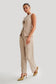 Suiting Straight Leg Pants - Taupe Pinstripe