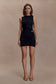 The AMIA Slinky Sleeveless Mini Dress With Hardware is a contemporary statement cut from MESHKI’s signature slinky fabrication. Designed with a refined boat neckline, it features polished hardware that draws the eye and enhances the gathered detailing through the bodice. Fully lined for a smooth, supportive finish, this fitted mini-length silhouette contours the body with effortless confidence. Modern, minimal, and endlessly wearable, this dress delivers instant impact with a clean, elevated edge.