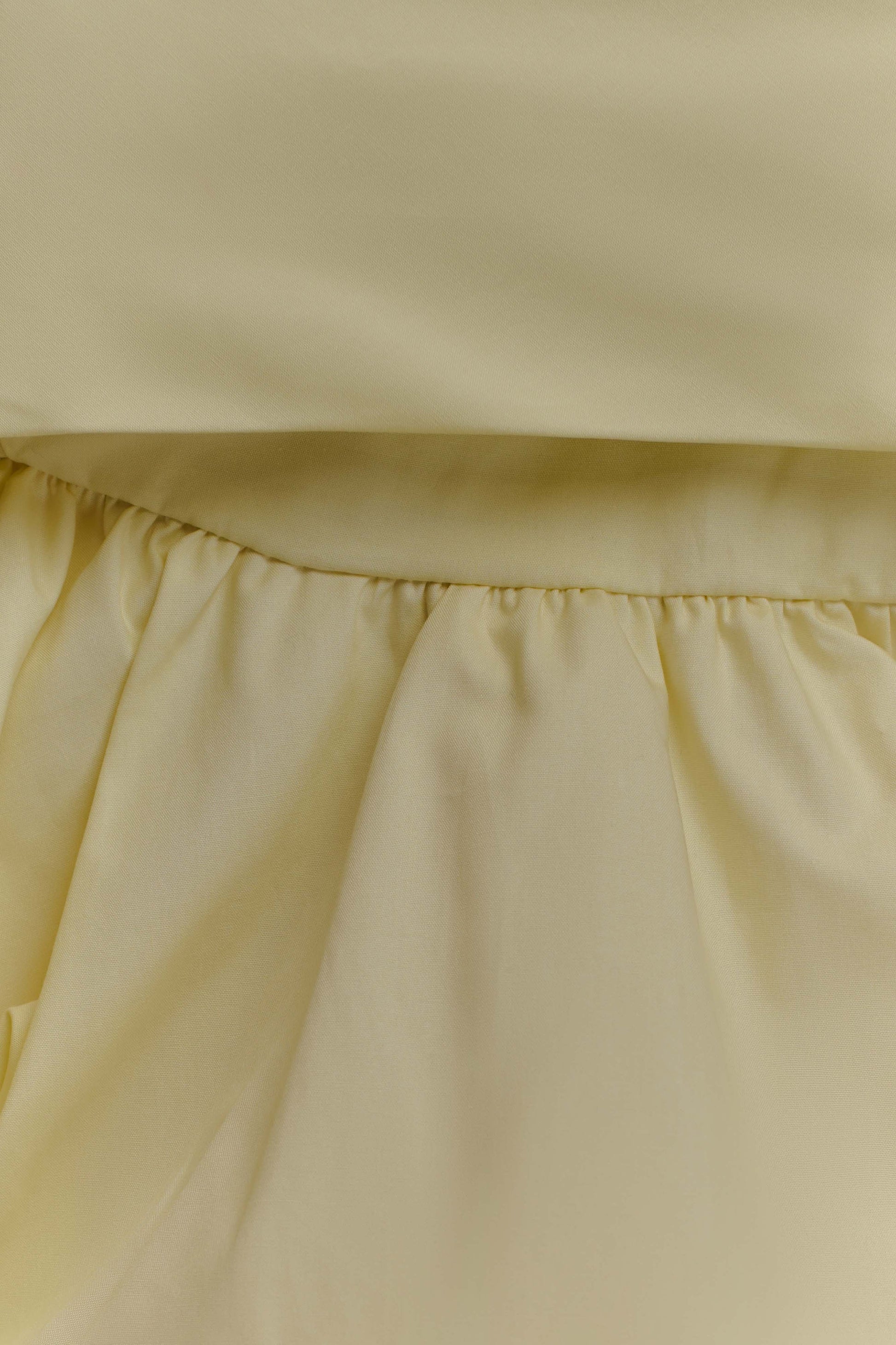 The AMIRAH Strapless Bubble Crop Top combines bold design with effortless elegance. Featuring a flattering strapless fit and a structured bust overlay, this top creates a sleek, feminine silhouette. The playful bubble hem shape adds volume and movement, while the cropped length offers a modern, flattering look. Fully lined for comfort and structure, it’s the perfect piece to elevate any outfit. For a chic and coordinated look, pair it with the Amirah Midi Skirt, creating a refined yet playful ensemble that’s perfect for both casual outings and special occasions.