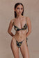 Ruched String Side Bikini Brief - Green Fluid Reverie Print