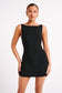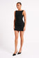 ANGELA is a black sleeveless mini dress with a clean boat neckline and A-line skirt. Crisp and modern, the front features contoured seam lines for a fresh, fitted look. The dress closes with an invisible zip to keep the silhouette smooth, sleek, and sexy. A beautiful blend of stylish and classy, this dress is a versatile wardrobe essential. Accessorise with an oversized blazer, clean earrings, and elegant heels like Geneva Square Diamante Mules.