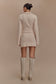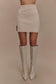 The ANNABELLE Knit Mini Skirt is a stylish and contemporary take on classic knitwear. Featuring an eye-catching asymmetrical waistline, this skirt adds a modern twist to your wardrobe. The fold-over waist panel and ribbed waist provide a comfortable and flattering fit, while the non-functional side buttons add a touch of detail without compromising on style. Its mini length gives a playful and chic vibe, perfect for any season. For a complete and coordinated look, pair it with the Annabelle Knit Curved Hem Cardigan.