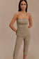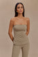 The ANTONIA Strapless Cut Out Top is a chic and modern addition to your wardrobe. This strapless top features a longline design with an open back detail and a stylish back cross panel that conveniently covers a bra. Crafted from stretch fabrication, it ensures a comfortable and flattering fit. Perfectly paired with the Antonia Pleated Wide Leg Pants or Layla Flared Crepe Capri Pants this ensemble creates a sophisticated and effortlessly stylish look for any occasion.