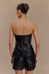 Introducing the ARABELLE Faux Leather Shorts—a high-waisted essential with a touch of edge. Designed with a flattering waistband and structured, rounded shape, these mini-length shorts bring a modern twist to any look. Sleek, non-functional front pockets add a stylish detail, while the side zip closure ensures a flawless fit, and full lining provides all-day comfort. Crafted from luxe PU fabrication, these shorts pair perfectly with the Allana Faux Leather Strapless Top for an unforgettable ensemble that’s equal parts bold and sophisticated.