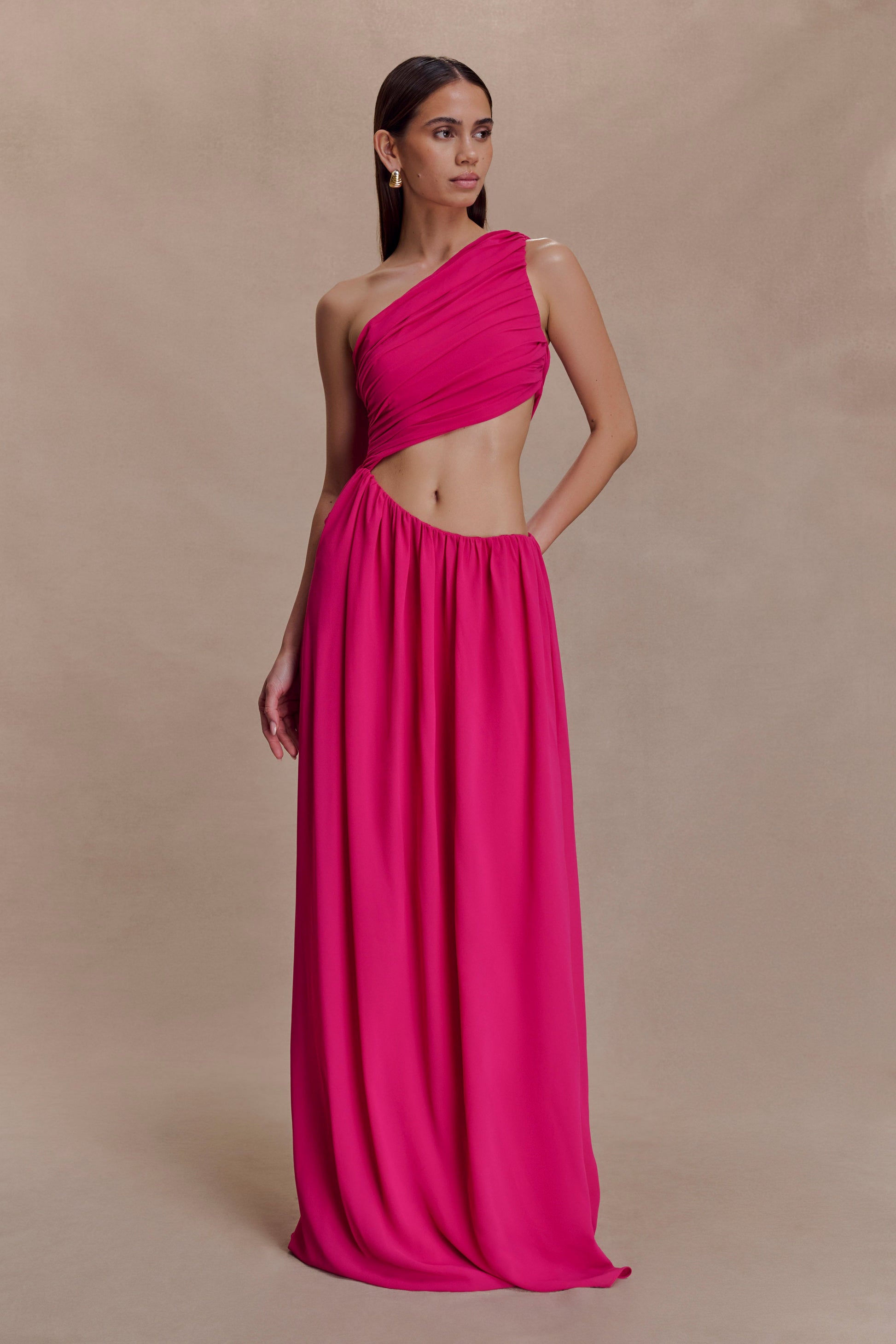 Chiffon Cut Out Maxi Dress - Fuchsia