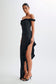 Step into sophistication with the ARIELLE Off Shoulder Ruffle Midi Dress, a stunning blend of elegance and charm. With its off-the-shoulder design and asymmetrical hem, this dress exudes contemporary sophistication. The frill hem adds a playful and dynamic touch, while the flower appliqué neckline and hem bring a delicate and feminine flair. Designed with a bodycon silhouette, it offers a flattering fit for any occasion. Elevate your ensemble with the Arielle Off Shoulder Ruffle Midi Dress, where modern style meets timeless grace for a captivating look.
