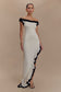 Off Shoulder Ruffle Midi Dress - Ivory/Black