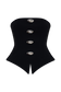 The ARLA Button Up Corset Top is designed with precision tailoring and contemporary detail. Featuring a straight neckline and a shaped front hemline, it cinches the waist with a sculpted silhouette. Hardware trim runs along the centre front seam for a touch of polish, while full lining ensures structure and comfort. Finished with a centre back zip, this top balances strength and sophistication—perfect paired with denim, suiting, or coordinating separates.