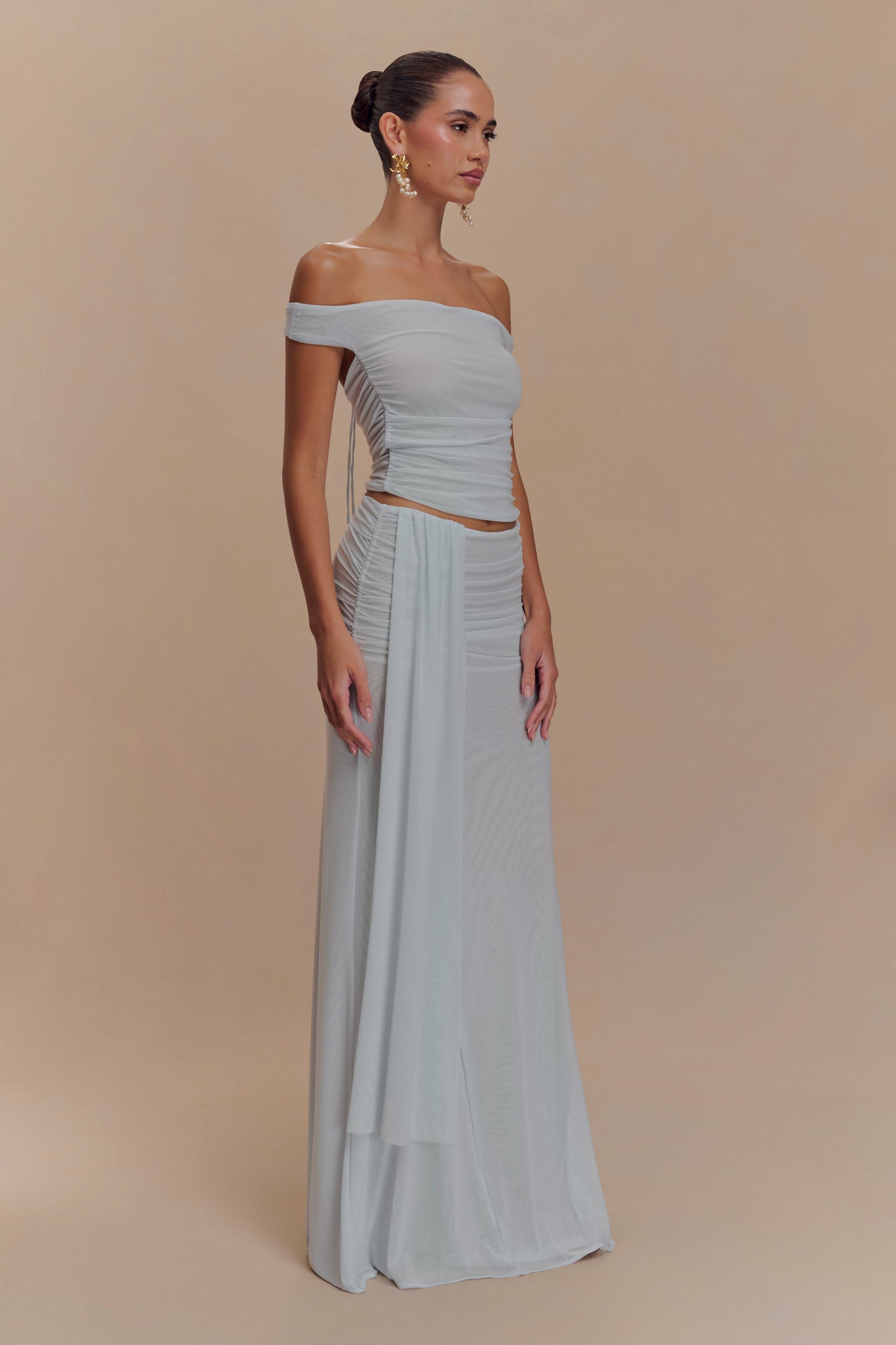 Introducing the ARNA Mesh Maxi Skirt, a perfect blend of elegance and ease. Designed with a flattering mid-rise waist and a timeless A-line silhouette, this skirt drapes beautifully for a graceful look. The discreet side zip ensures a seamless finish, while the mini-length lining provides coverage beneath the lightweight mesh overlay, creating a soft, layered effect. Perfect for day or night, this skirt pairs effortlessly with the Brooklyn Mesh Crop Top.