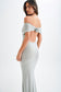 The ARNA Off Shoulder Diamante Maxi Dress exudes elegance and glamour. This bodycon dress features an off-the-shoulder design and a stunning fishtail hem, creating a dramatic silhouette. The gathered bust overlay adds a touch of sophistication, while the open back with back hardware provides a striking detail. With its maxi length, the Arna dress is perfect for making a statement at any special event.