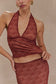Elevate your wardrobe with the ASHER Sheer Lace Halter Top, a captivating blend of allure and elegance. Featuring a striking halter neckline and a daring V front, this top showcases your décolletage with grace. The sheer textured fabrication adds a layer of intrigue, while the fitted waist highlights your silhouette beautifully. Designed in a longline cut, this top offers a flattering fit that pairs perfectly with the Robyn Sheer Lace Maxi Skirt. Complete with a mesh lining for comfort, this top is an exquisite choice for evenings out or special occasions.