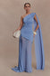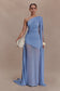 Slinky One Shoulder Maxi Dress - Cornflower Blue