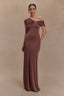 Asymmetrical Slinky Maxi Dress - Chocolate