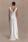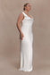 The ASHLEY Cowl Neck Lace And Satin Maxi Dress is designed to drape effortlessly while maintaining sculpted structure. Featuring a soft cowl neckline at both the front and back, it frames the décolletage with fluid elegance, finished with lace trim along the front edge for a subtle textural contrast. A delicate tie at the centre-back neckline adds adjustability and softness, while an internal adjustable waist stay provides support and definition through the silhouette. Fully lined and secured with an invisible side zip, this sleeveless maxi-length design balances romance with precision.