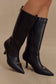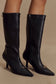 The ASTRA Faux Leather Buckle Boot is a stylish statement piece that combines edgy design with sophisticated details. Featuring a pointed toe and a sleek 7cm heel, this knee-length boot offers a modern, elongated silhouette. The buckle and strap detailing at the toe and calf add a distinctive, fashion-forward touch, making the Astra Boot a versatile choice for both day and evening wear. Crafted from faux leather, it provides a chic, cruelty-free option for your footwear collection.