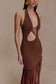 The AUBREE Crepe And Mesh Maxi Dress is a statement silhouette that balances structure with fluidity. Featuring a halter neckline and plunging V detail, it’s finished with a back neck button closure and a centre-front cut-out for a daring edge. A fitted crepe bodice contrasts with gathered mesh panels through the skirt and front, creating dimension and movement. Partially lined for coverage yet left sheer in key areas, this dress is designed for impact with a modern, feminine finish.