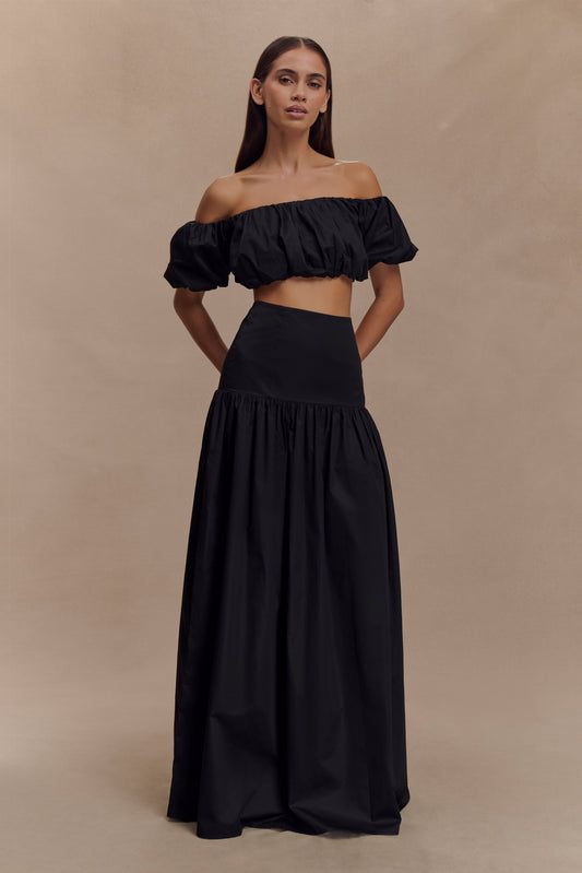 The AUTUMN Off-Shoulder Bubble Top is a statement in effortless femininity. Designed with a gathered, elasticated neckline and waist, this off-the-shoulder silhouette creates a soft, voluminous shape with a flattering cropped fit. The puff sleeves add a touch of romance, while the pull-on design ensures ease and comfort. Perfectly paired with the Autumn Maxi Skirt, this combination exudes charm and sophistication, making it ideal for sunlit strolls, brunch dates, or warm-weather soirées.