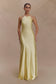 The BELLA Satin Halter Maxi Dress is designed for fluid movement and feminine ease. Featuring an adjustable halter neckline with soft gathers at the front, it flows into a relaxed silhouette that flatters without constraint. The open back adds a touch of sensuality, balanced by a straight skirt that skims the frame to a floor-grazing finish. Crafted in a lustrous satin fabrication and finished with an invisible back zip, this dress is your go-to for sunset soirées, destination weddings, and everything in between.