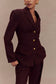 The BELLAMY Cinched Blazer is a statement piece that combines timeless elegance with a contemporary edge. Featuring a button front closure, classic collar and lapel, and strong structured shoulders enhanced with shoulder pads, this blazer offers a powerful silhouette. The long sleeves and functional welt pockets add both style and practicality, while the centre back vent ensures ease of movement. Fully lined for a luxurious finish and with a back belt to cinch the waist, it creates a flattering hourglass figure. Pair with the Penelope Pleated High Waisted Pants for a sophisticated, tailored look.