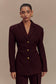 The BELLAMY Cinched Blazer is a statement piece that combines timeless elegance with a contemporary edge. Featuring a button front closure, classic collar and lapel, and strong structured shoulders enhanced with shoulder pads, this blazer offers a powerful silhouette. The long sleeves and functional welt pockets add both style and practicality, while the centre back vent ensures ease of movement. Fully lined for a luxurious finish and with a back belt to cinch the waist, it creates a flattering hourglass figure. Pair with the Penelope Pleated High Waisted Pants for a sophisticated, tailored look.
