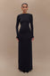 The BENNETT Slinky Long Sleeve Maxi Dress combines sultry elegance with modern sophistication. Featuring a striking low back cowl neckline with playful back bows, this bodycon dress perfectly hugs your curves, creating a figure-flattering silhouette. Crafted from stretch fabrication for a comfortable yet sculpting fit, the long sleeves add a touch of balance, while the maxi length adds a dramatic flair. Ideal for evening occasions, this dress effortlessly blends bold style with refined allure, making a memorable statement wherever you go.