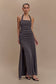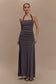 The BENTLEY Peached Jersey Halter Maxi Dress combines modern elegance with a flattering silhouette. Featuring a halter neckline and a ruched bodice that extends to the lower hip, this dress accentuates your figure while providing a comfortable fit. The flared lower skirt adds graceful movement, and the leg split enhances the dress's dramatic effect. Lined for a smooth finish, this dress reaches a maxi length, making it a perfect choice for formal events or elegant evening outings.
