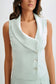 Introducing the BERKLEY Suiting Waistcoat with Cowl, epitomising tailored grace with a modern twist. Its asymmetrical scooped neckline and rounded collar with lapel create a refined silhouette that exudes confidence and sophistication. Adorned with shell buttons and featuring an off-centre functional button closure, this longline, structured waistcoat offers timeless elegance and versatility. Pair it effortlessly with the Berkley Suiting Mini Skirt for a coordinated ensemble that seamlessly transitions day to evening gatherings. Elevate your wardrobe with this classic piece that blends impeccable tailoring with contemporary charm.